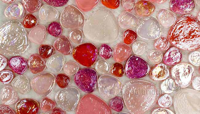 Mosaic tiles of various colors, shapes and materials